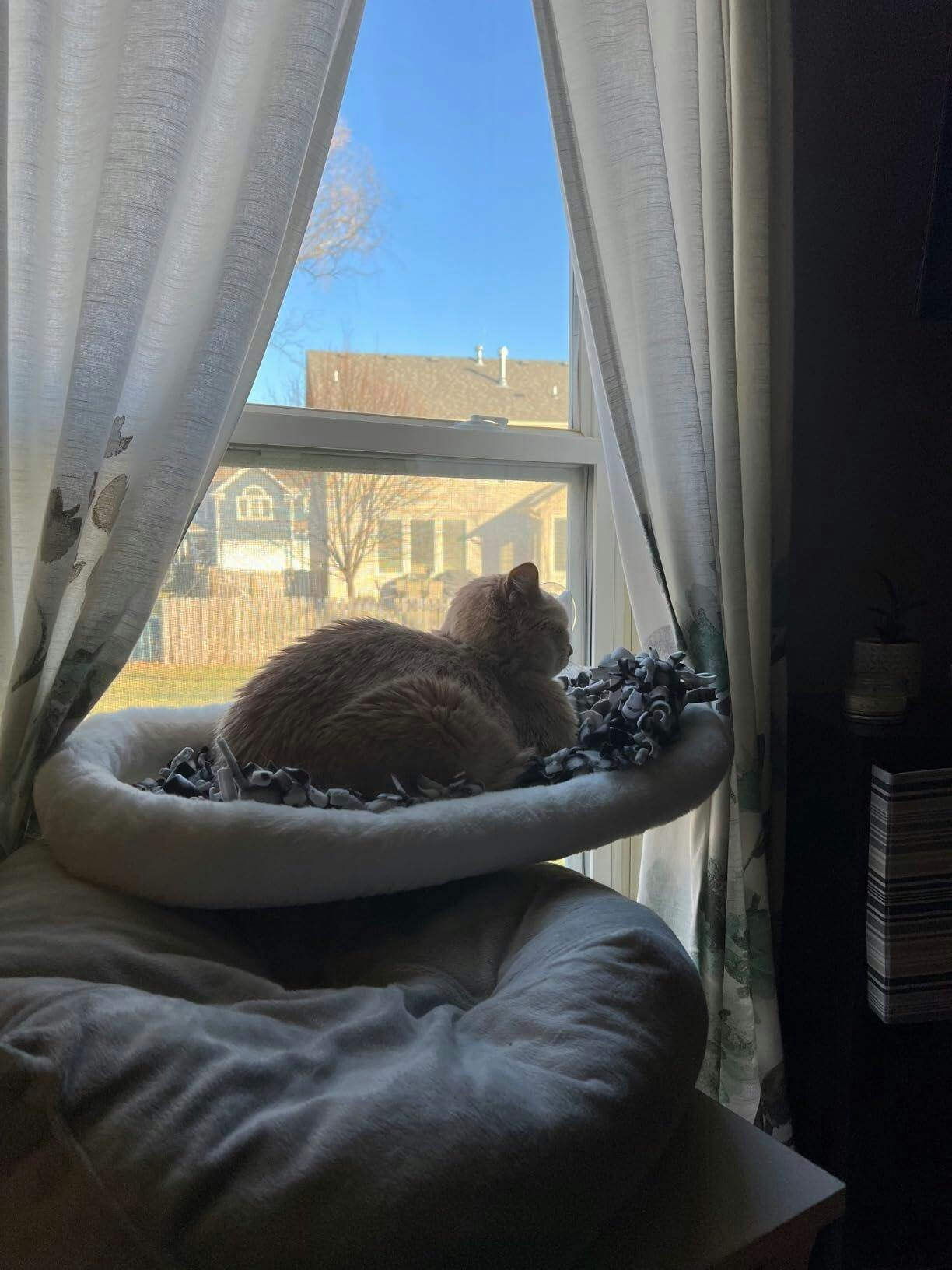 Perfect for indoor cats, this window hammock offers a 360° sunbathing experience, reduces boredom, and keeps your feline friend entertained with a bird’s-eye view of the outdoors.