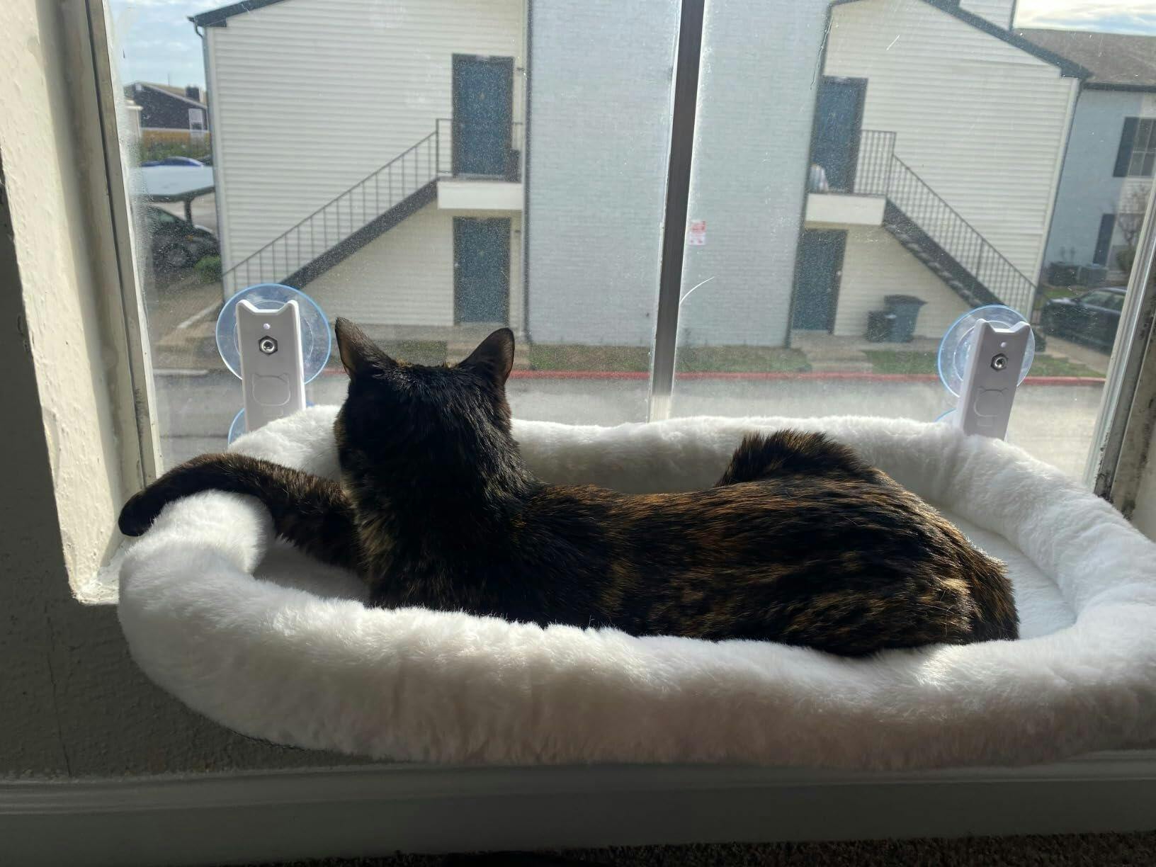 Built for durability, the solid steel frame and 4 upgraded suction cups support cats up to 40 lbs, keeping them safe while they relax or stretch. No tools required—just click the frame together, attach the suction cups, and your cat’s favorite new nap spot is ready!