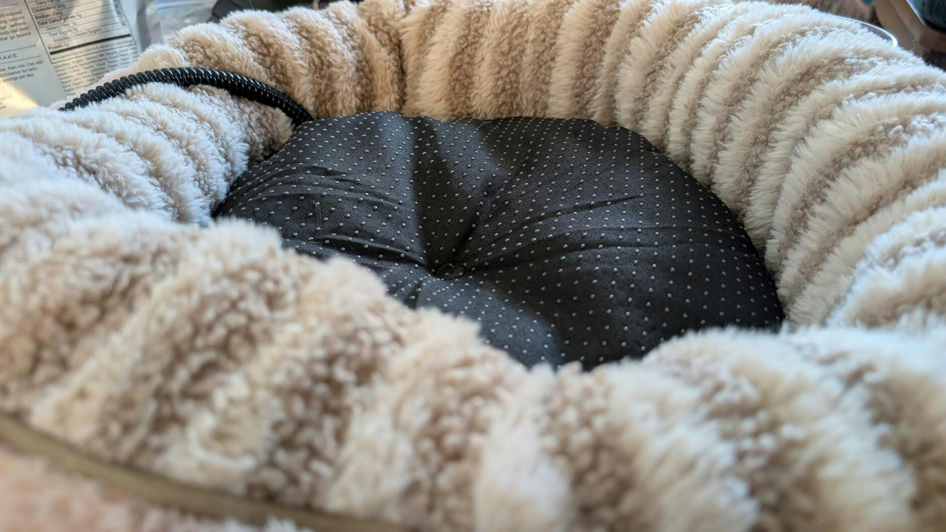 Crafted in a donut-shaped design, the raised edges create a secure nook that supports your pet’s neck and head, while the ultra-soft plush and thick cotton filling provide relief for joints and muscles. The removable heater makes it a versatile option for all seasons — simply detach it and toss the cover into the washing machine for effortless cleaning.