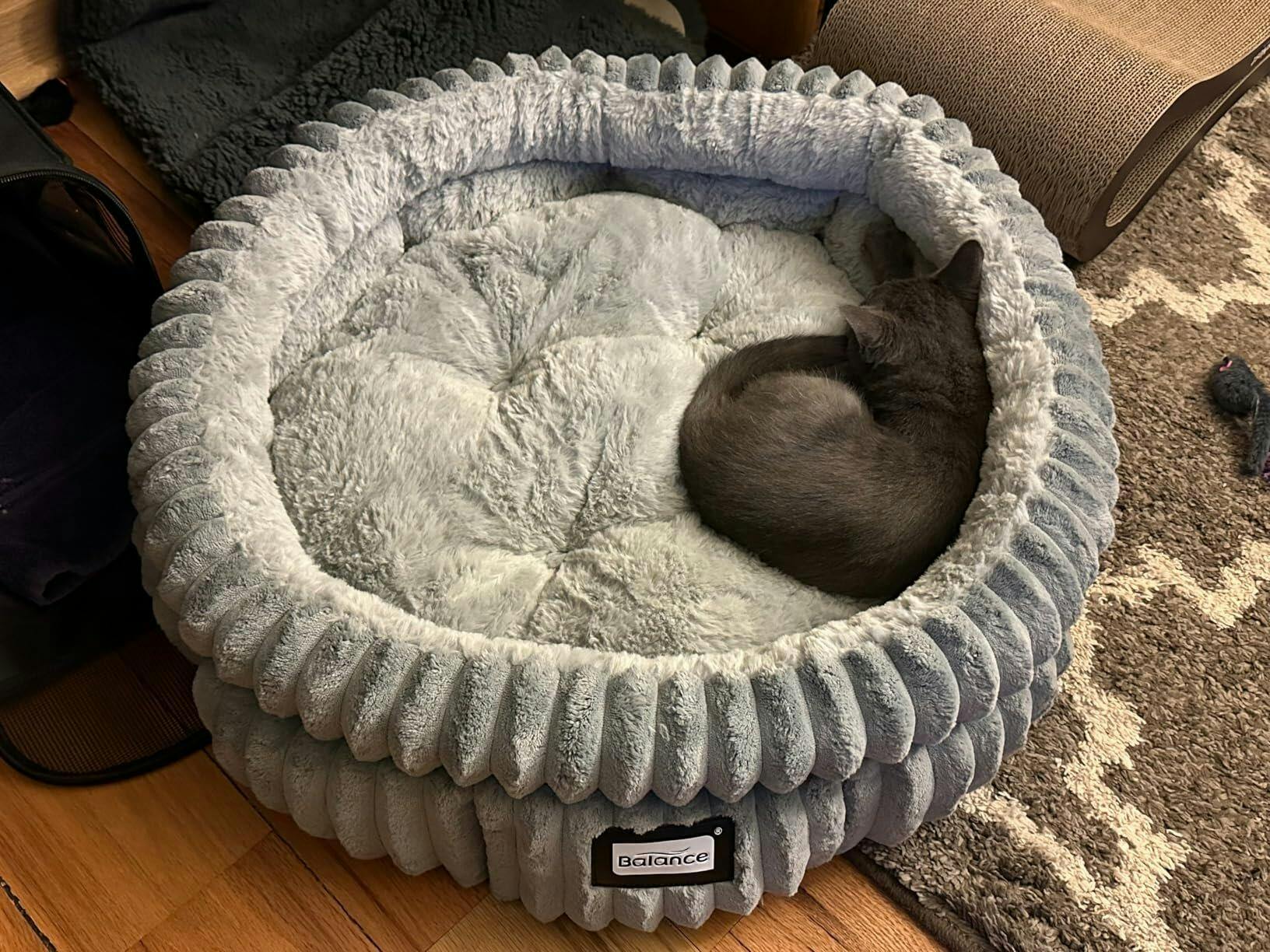 Petglidee Plush Cat Bed – Super Soft Round Faux Fur Bed for Cats & Small Dogs, Washable, Anti-Slip, Cozy Calming Donut Bed (Grey)