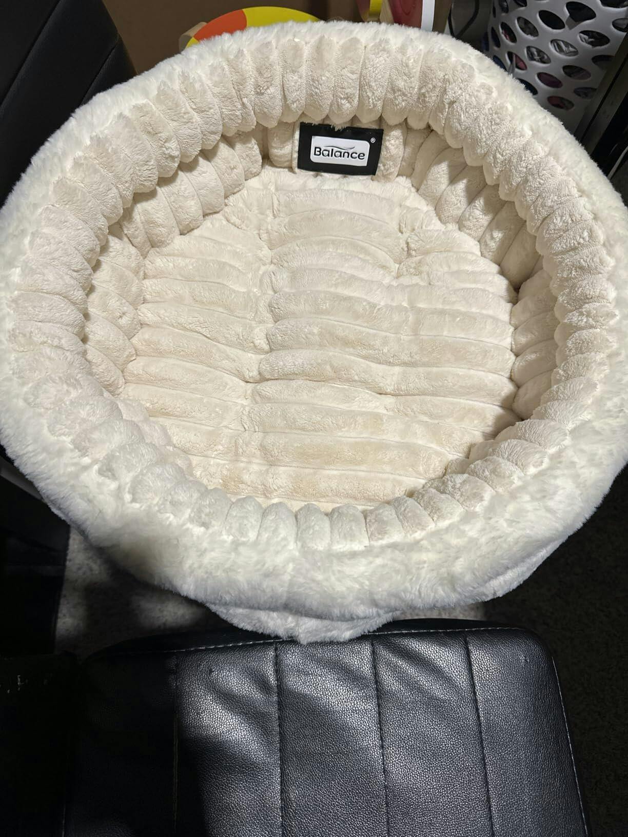 Designed for pets who love to curl up, this round calming bed features luxurious faux fur and a raised bolster edge, providing soft head and neck support while promoting a sense of safety and relaxation. Whether it’s nap time, lounging, or all-night snoozing, your pet will feel snug and secure.